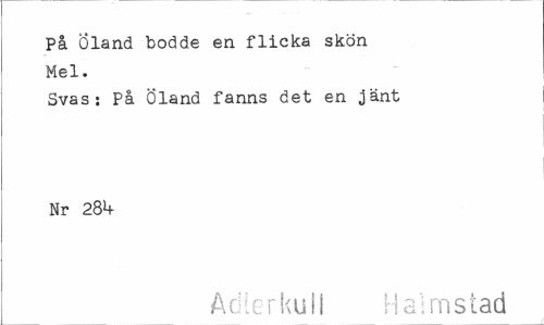 //// På Öland bodde en flicka skön Mel. //// Svas: På Öland fanns det en jänt Nr 28k //// Adlerkull Halmstad ////