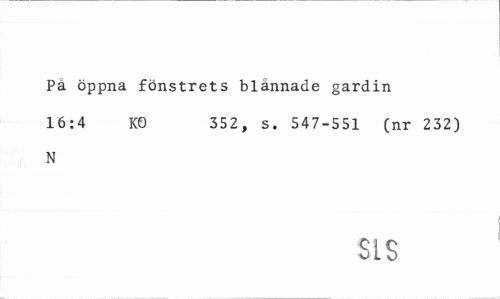 //// Pä öppna fönstrets blännade gardin //// 16:4 KO 352, s. 547-551 (nr 232) //// N //// SIS ////