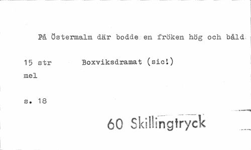 //// På Östermalm där bodde en fröken hög och båld //// 15 str Boxviksdramat (sicl) //// mel //// s. 18 //// 60 Skillingtryck ////