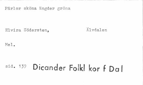 //// Pärlor sköna ängder gröna //// Elvira Södersten, Älvdalen //// Mel, //// sid. 136 Dicander Folk! kor f Dal ////