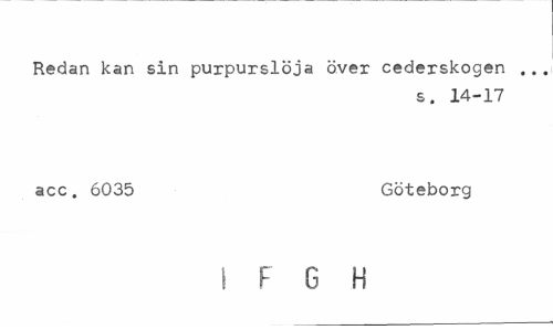//// Redan kan sin purpurslöja över cederskogen ... //// s. 14-17 //// acc. 6035 Göteborg //// I F G H ////