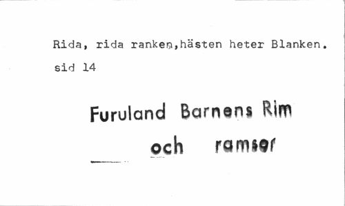 //// Rida, rida ranke©,hästen heter Blänken, sid 14 //// Furuland Barnens Rim och rami^f ////