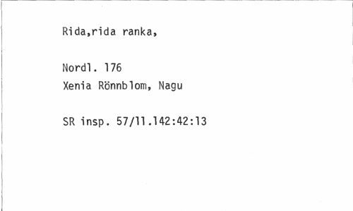 //// Rida,rida ranka, Nordl. 176 //// Xenia Rönnblom, Nagu SR insp. 57/11.142:42:13 ////