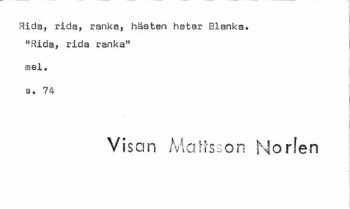 //// Rida, rida, ranka, hästen heter Blanka. "Rida, rida ranka" //// mel. //// s. 74 //// Visan Mattsson Norlen ////