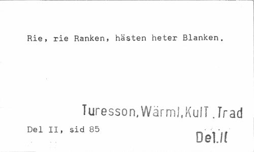 //// Rie, rie Ranken, hästen heter Blänken. //// Turesson, Wärml.KulT. Trad //// Del II, sid 85 DgI /f ////