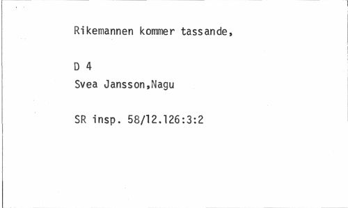 //// Rikemannen kommer tassande, D 4 //// Svea Jansson,Nagu SR insp. 58/12.126:3:2 ////