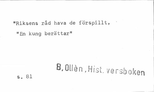 //// "Riksens råd hava de förspillt, "En kung berättar" //// B-Olién ,HisJ. versboken //// S . 81 ////