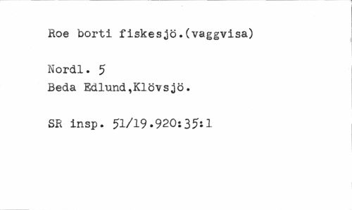 //// Roe borti fiskesjö.(vaggvisa) Nordl. 5 //// Beda Edlund,Klövsjö. SR insp. 51/19.920:35il ////
