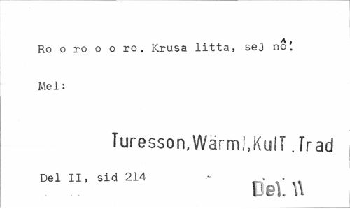 //// a , //// Ro o ro o o ro. Krusa litta, sej no. Mel: //// Turesson,Wärml.KulT Jrad //// Del II, sid 214 ~ . - _ //// Del. \\ ////
