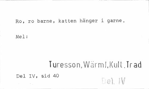 //// Ro, ro barne, katten hänger i garne. Mel: //// Turesson,Wärml, Kult. Trad //// Del IV, sid 40 //// L Dl. IV ////
