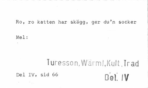 //// Ro, ro katten har skägg, ger du'n socker Mel: //// Turesson, Wärml, Kult. Träd //// Del IV, sid 66 g^j jy ////
