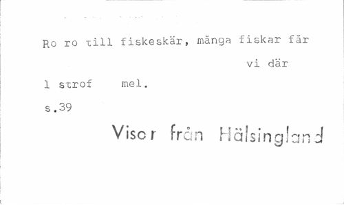//// Ro ro till fiskeskär, mänga fiskar får //// vi där //// 1 strof mel. s . 39 //// Visor från Hälsingland ////