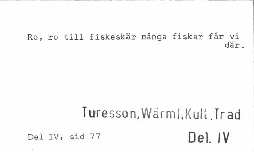 //// Ro, ro till fiskeskär många fiskar får vi //// där. //// Turesson,WärmI,KuK.Trad //// Del IV, sid 77 Qg| (ty ////