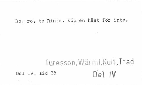 //// Ro, ro, te Rinte, köp en häst för inte, //// Turesson, Wärml, Kult. Trad //// Del IV, sid 35 Qp] |y ////