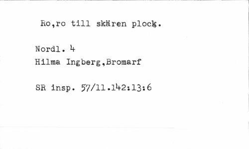 //// Ro,ro till skären plock• Nordl. k //// Hilma Ingberg,Bromarf SR insp. 57/H.ll+2;13i6 ////