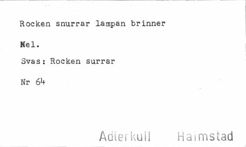 //// Rocken snurrar lampan brinner Mel. //// Svas: Rocken surrar Nr 6*+ //// Adierkuil Halmstad ////