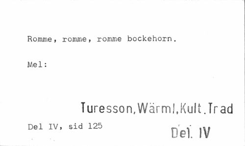//// Romme, romme, romme bockehorn. Mel: //// Turesson, Wärml, Kult. Trad //// Del IV, sid 125 - , //// Del IV ////