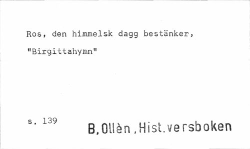 //// Ros, den himmelsk dagg bestänker, "Birgittahymn" //// s 139 //// B, Olian .Hist. versboken ////
