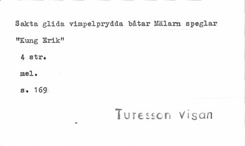 //// Sakta glida vimpelprydda båtar Mälarn speglar »Kung Erik" 4 str* mel. s. 169 //// Tureiscn Visan ////