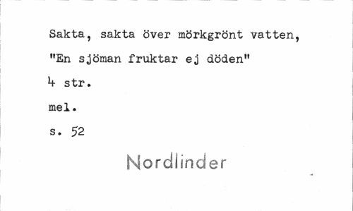 //// Sakta, sakta över mörkgrönt vatten, "En sjöman fruktar ej döden" b str. mel. s. 52 //// Nordlinder ////