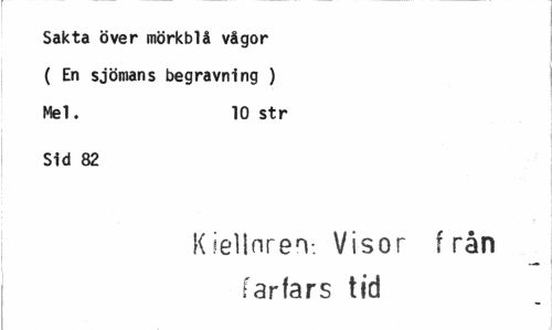 //// Sakta över mörkblå vågor ( En sjömans begravning ) Mel. 10 str //// Sid 82 //// Kiellnrerv. Visor från farfars tid ////