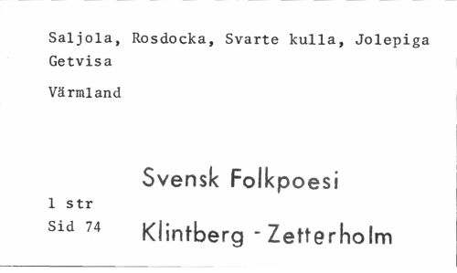 //// Saljola, Rosdocka, Svarte kulla, Jolepiga Getvisa //// Värmland //// Svensk Folkpoesi //// 1 str //// sid 74 Klintberg -Zetterholm ////