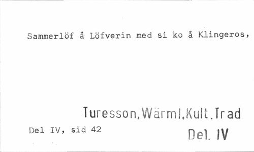 //// Sammerlöf å Löfverin med si ko å Klingeros, //// Turesson, Wärml,Kult. Trad //// Del IV, sid 42 p^-j jy ////