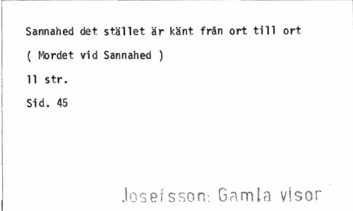 //// Sannahed det stället är känt från ort till ort ( Mordet vid Sannahed ) 11 str. Sid. 45 //// Josefsson-, Gamla visor ////