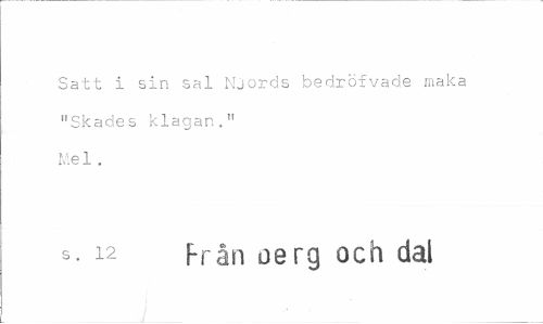 //// Satt i sin sal Njjrds bedröfvade maka "Skades klagan." Mel . //// s. 12 Från oerg och dal //// i ////