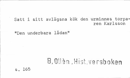 //// Satt i sitt avlägsna kök den urminnes torparen Karlsson //// "Den underbara lådan" //// B,Oilen ,Hist.versboken //// s. 165 ////
