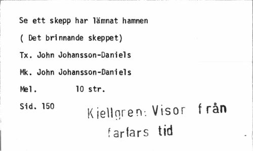 //// Se ett skepp har lämnat hamnen ( Det brinnande skeppet) Tx. John Johansson-Daniels Mk. John Johansson-Daniels Mel, 10 str. //// S1d,l5° KieHnren. Visor från //// fartars tid ////