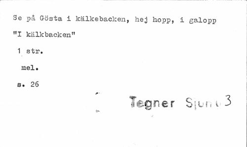 //// Se på Gösta i kälkebacken, hej hopp, i galopp "I kälkbacken" 1 str. mel. s. 26 //// Teqner //// •jp». ////