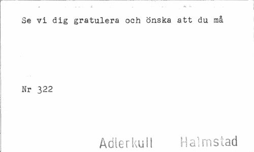 //// Se vi dig gratulera och önska att du må Nr 322 //// Adlerkull Halmstad ////