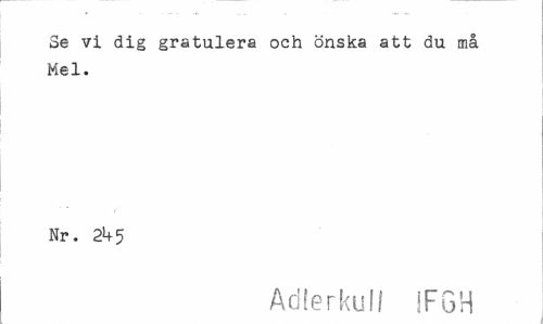 //// Se vi dig gratulera och önska att du må Mel. //// Nr. 2^5 //// Adlerkull IFGH ////