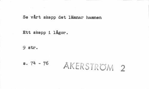 //// Se vårt skepp det lämnar hamnen Ett skepp i lågor. 9 str. //// - 7*"76 ÅKERSTRÖM 2 ////