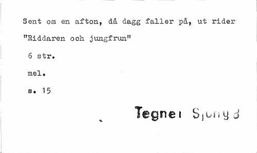 //// Sent om en afton, då dagg faller på, ut rider "Riddaren och jungfrun" 6 str. mel. s. 15 //// Tegnei Ss^nyd ////