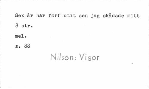 //// Sex år har förflutit sen jag skådade mitt 8 str. mel. s. 88 //// Nilson: Visor ////