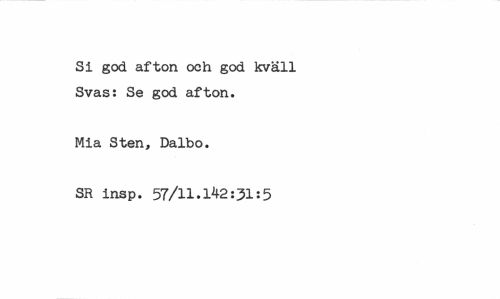 //// Si god afton och god kväll Svas: Se god afton. //// Mia Sten, Dalbo. //// SR insp. 57/11.142:31:5 ////