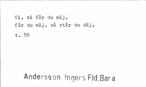 //// Si, si får du mäj, //// får du mäj, sa står du däj, //// s. 58 //// Andersson Ingers Fld.Bara ////