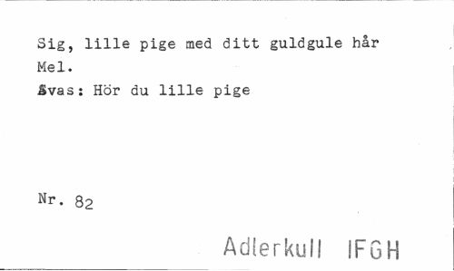 //// Sig, lille pige med ditt guldgule hår Mel. //// Svas: Hör du lille pige Nr. 82 //// Adlerkull IFGH ////