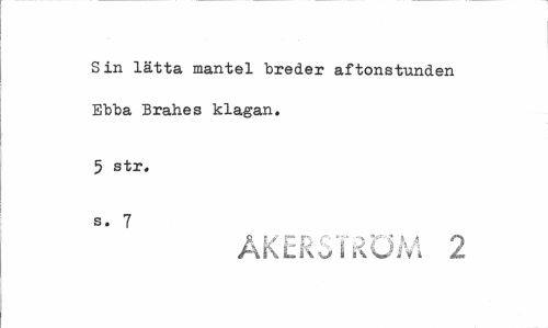//// Sin lätta mantel breder aftonstunden Ebba Brahes klagan. //// 5 str. //// s. 7 //// ÅKERSTRÖM 2 ////