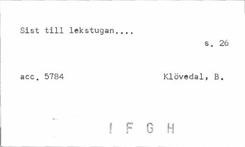 //// Sist till lekstugan... //// s. 26 //// acc. 5784 Klövedal, B. //// I F G H ////