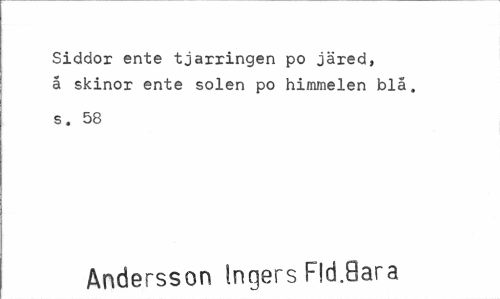 //// Siddor ente tjarringen po järed, å skinor ente solen po himmelen blå. //// s. 58 //// Andersson Ingers Fld.Bara ////