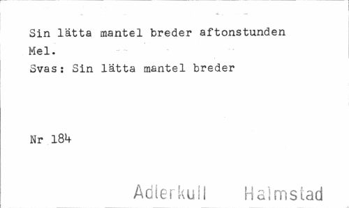 //// Sin lätta mantel breder aftonstunden Mel. //// Svas: Sin lätta mantel breder Nr 18!+ //// Adlerkull Halmstad ////
