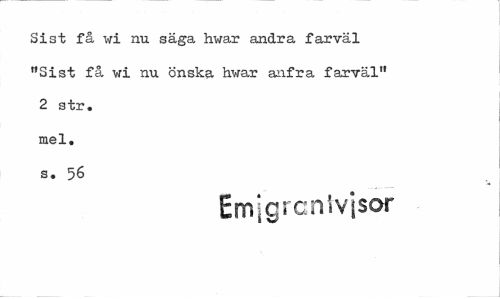 //// Sist få wi nu säga hwar andra farväl "Sist få wi nu önska hwar anfra farväl" 2 str. mel. s. 56 //// Emjgrcnivisor ////