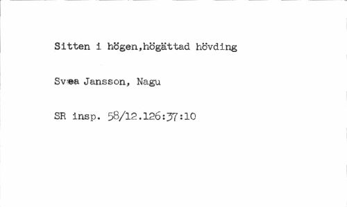 //// Sitten i högen,högättad hövding Svea Jansson, Nagu SR insp. 58/12.126:37:10 ////