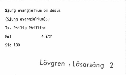 //// Sjung evangjelium om Jesus (Sjung evangjelium)*.,.. Tx. Philip Phillips Mel 4 str //// Sid 130 //// Lövgren ; Läsarsång 2 ////