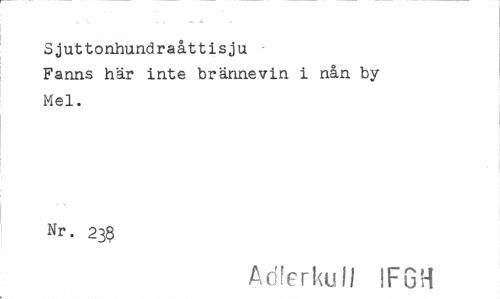 //// Sjuttonhundraåttis ju //// Fanns här inte brännevin i nån by //// Mel. //// Nr. 23$ //// Adlerkull IFGH ////