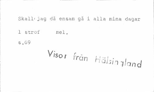 //// Skall'jag dä ensam gä i alla mina dagar //// 1 strof mel. s .69 //// Vls°r frän H^J * , //// haIr>n iland ////