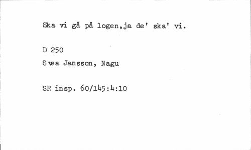 //// Ska vi gå på logen,ja de' ska' vi. D 250 //// S\ea Jansson, Nagu SR insp. 60/1U5:U:10 ////